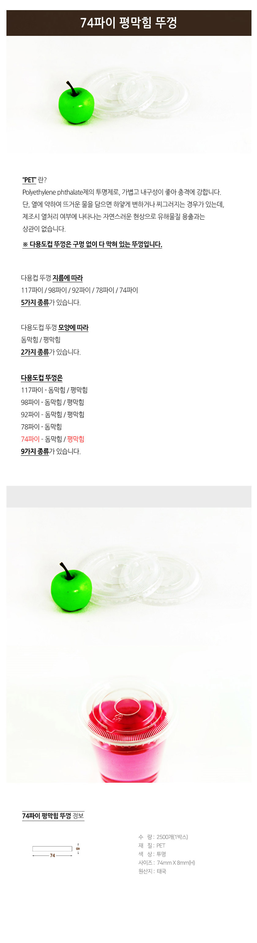 74파이 페트컵 뚜껑평막힘