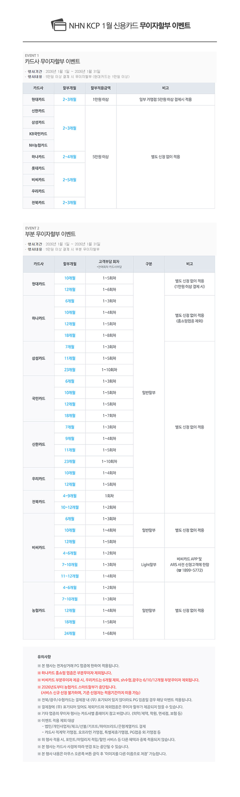 ++2026년 1월 카드무이자 안내++