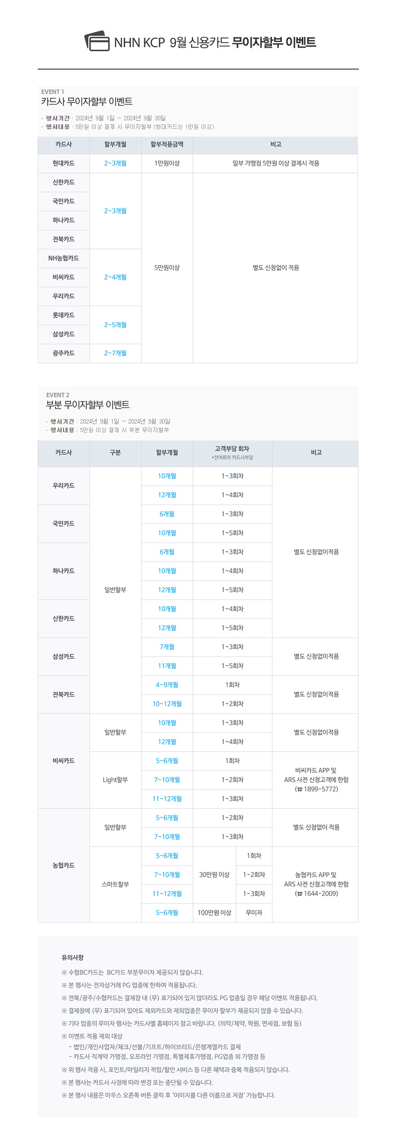 ++2024년 9월 카드무이자 안내++